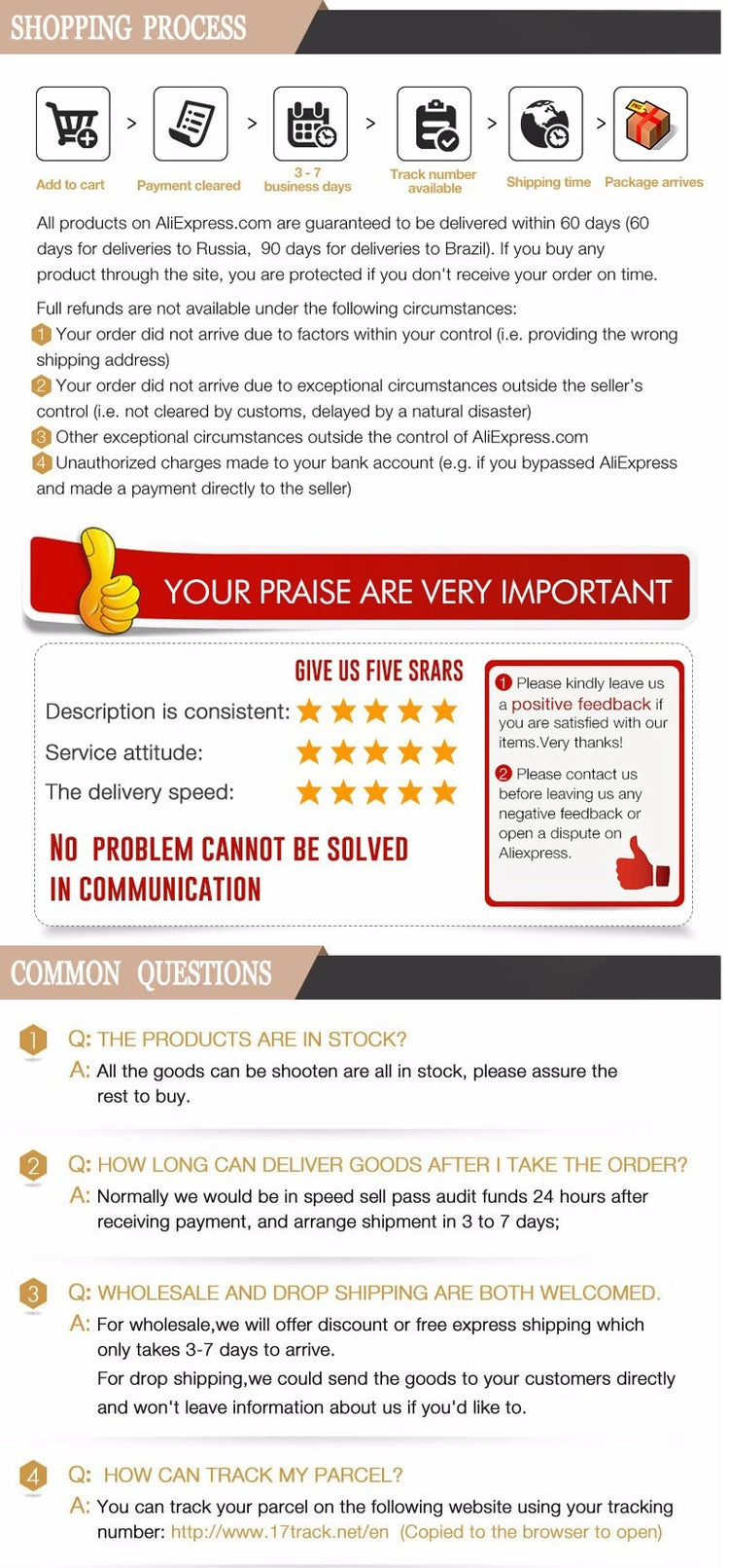 Ex: Shipping and return policies, size guides, and other common questions.
